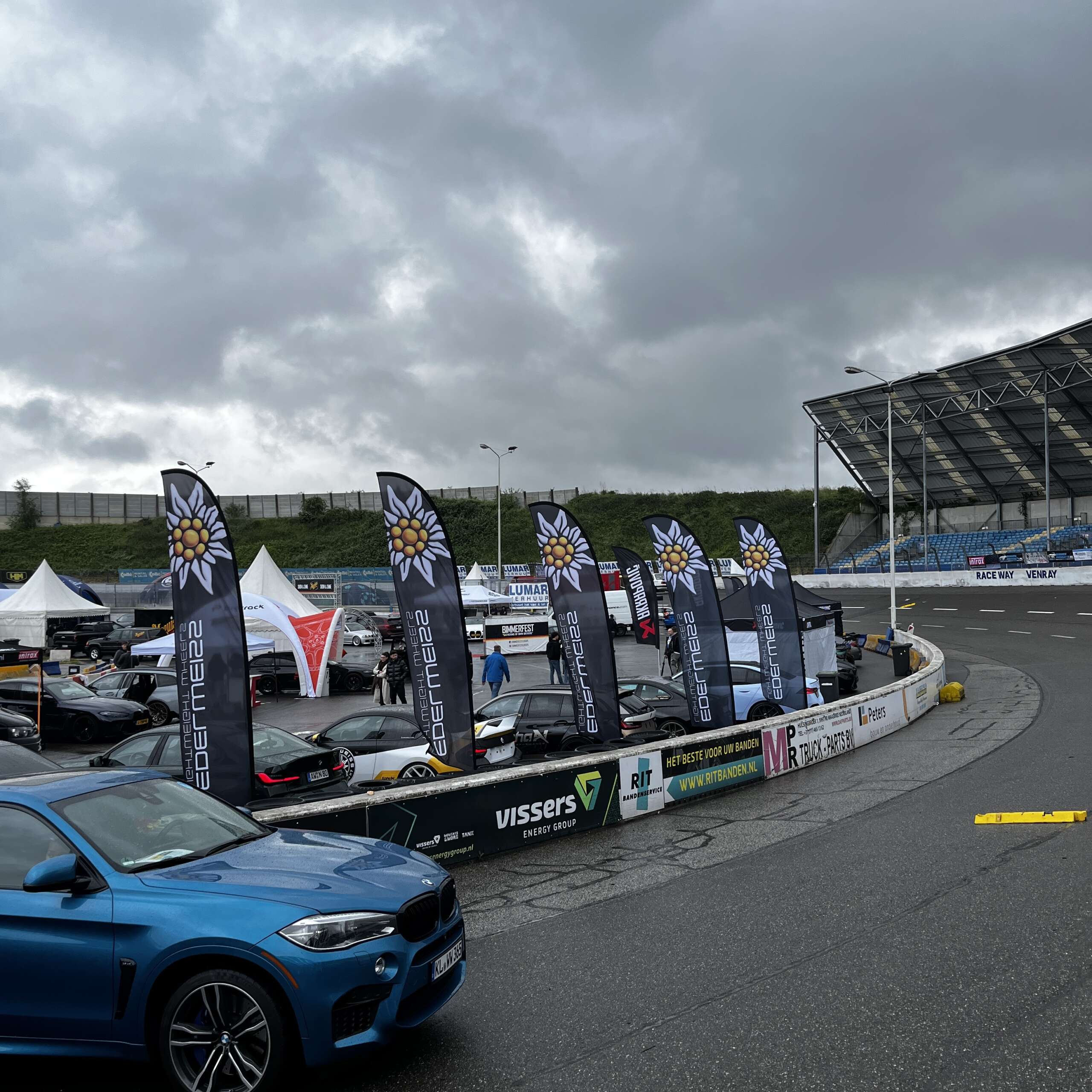 Zusammen mit einigen unserer Kunden und ihren Autos und den MFlights (thanks for having us with you! 🙂 ) konnten wir uns auf dem Oval des Venray Raceway aufstellen!