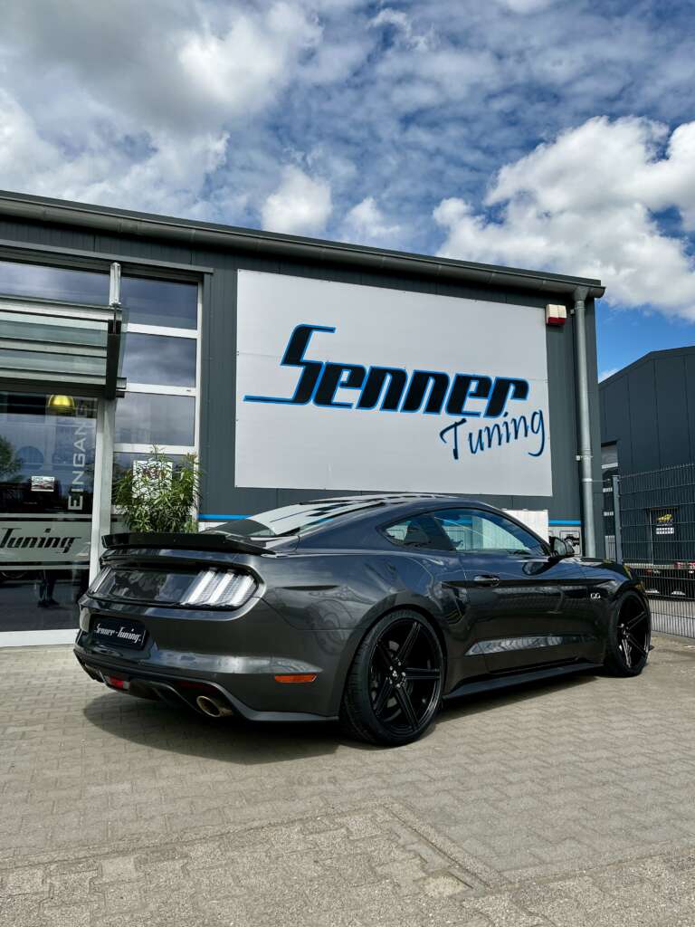 Dieser Mustang wurde mit einem KW V3 Gewindefahrwerk ausgestattet, das die Straßenlage spürbar verbessert und individuell einstellbare Dämpfungsoptionen für maximale Performance bietet. Für einen sportlich-aggressiven Look sorgt der 20″ KV1 Radsatz von MB-Design, der auch Deinen Mustang auf der Straße noch präsenter macht.